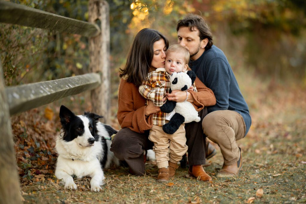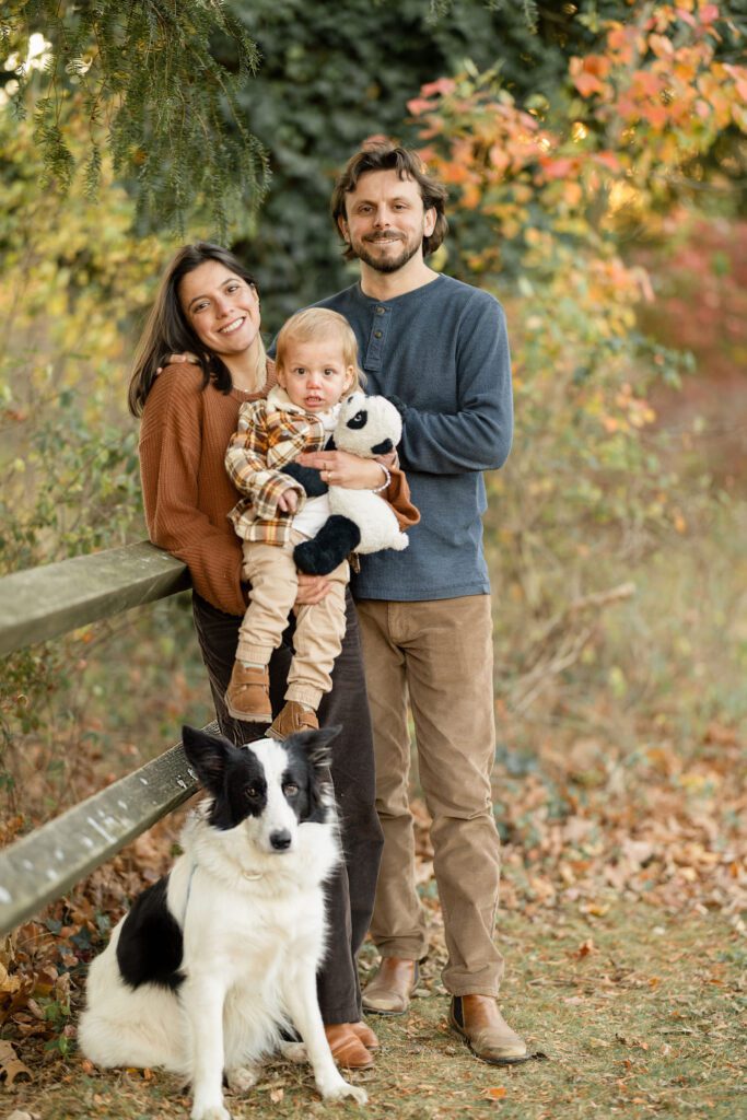 When we first started the session, their adorable toddler and their beautiful border collie, Peanut, were a little shy. I was given a heads up that Dad wasn’t thrilled about taking photos either! ๐ But it didn’t take long for them to warm up. We spent the afternoon being silly and capturing their genuine connection. The photos show their awesome personalities shining through, from the sweet moments with their toddler and dog, to the warm smiles they shared as a family.