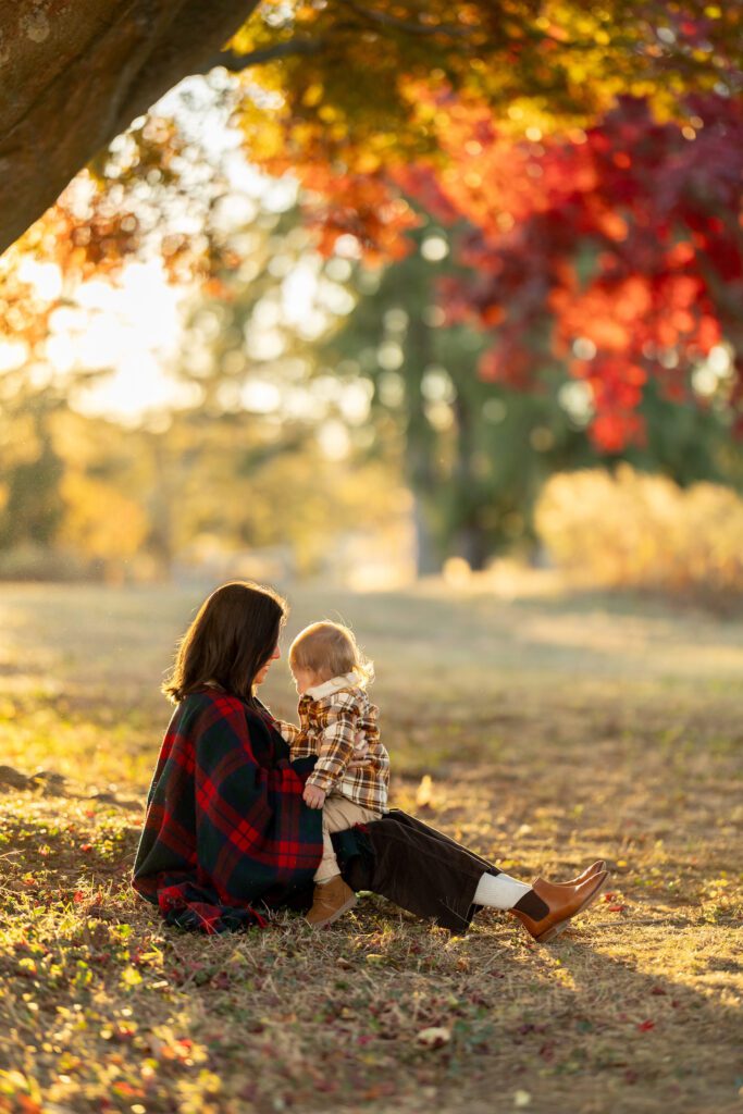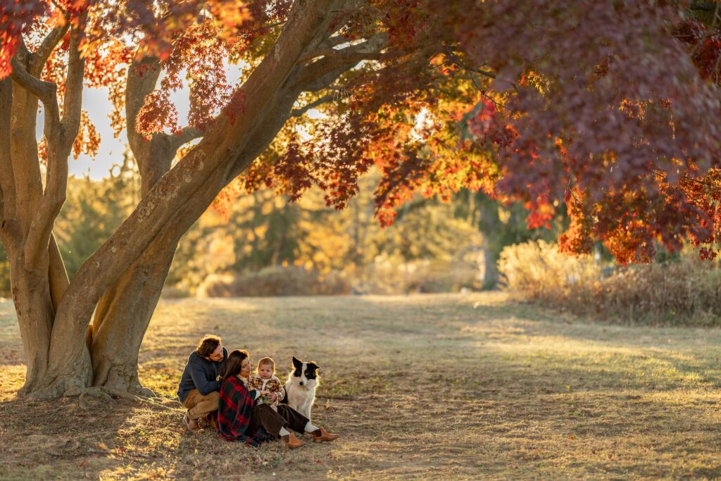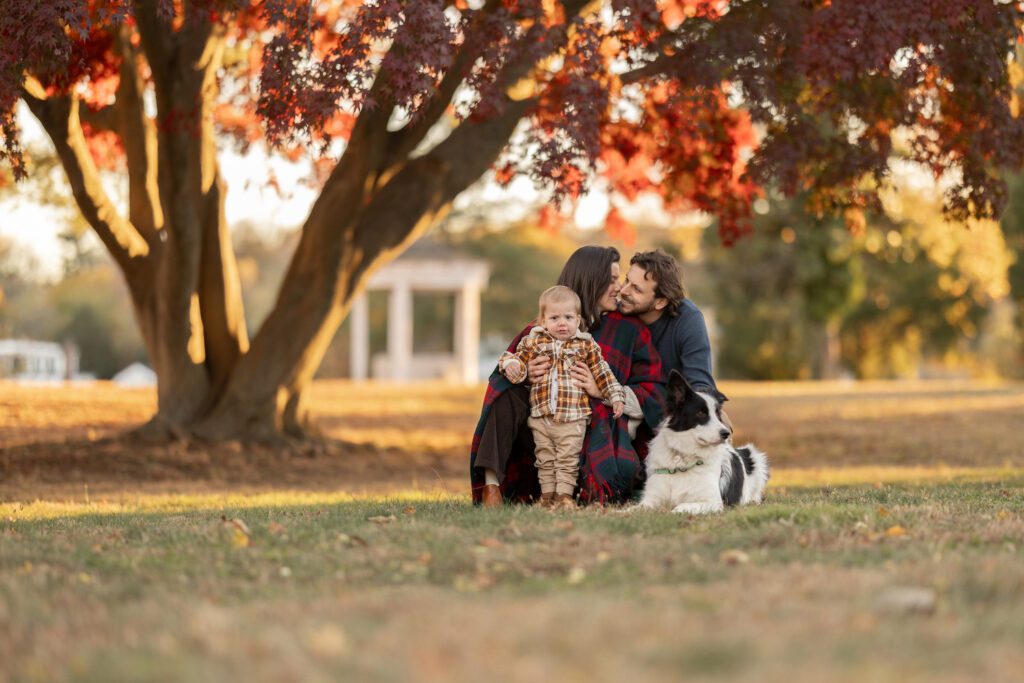 The family hoped to capture the last of the beautiful foliage. I knew the perfect spot for fall family photos in Atlantic Highlands, NJ – a local park with vibrant red and yellow leaves. What I didn’t know was just how perfect this location would be for them personally. It turns out this park holds a special place in their hearts; itโs where they took stroller walks together and sat beneath a big red tree, planting roots in the area after living and working around the world. The picturesque, colorful backdrop was more than just a beautiful setting; it represented their journey and their new home.