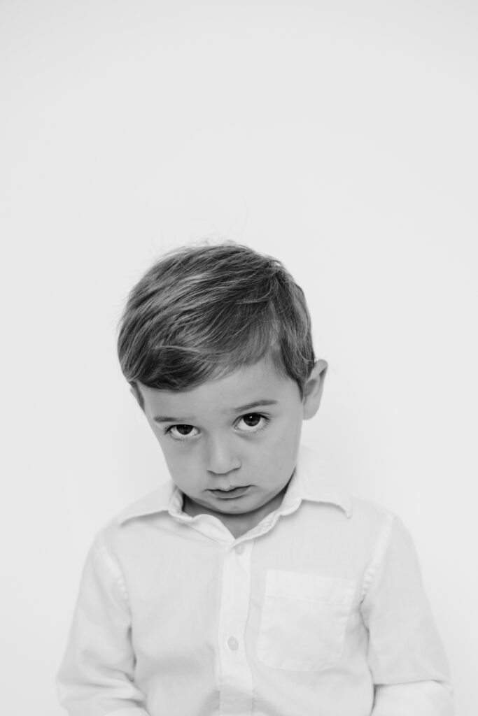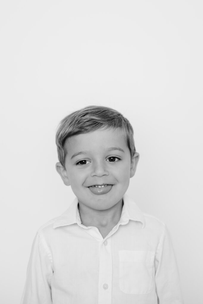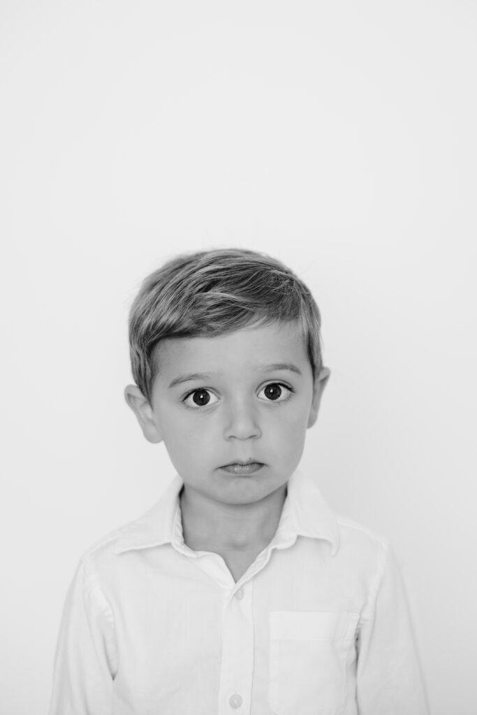 Unlike traditional school photos, personality portraits are all about capturing who your child is right now. With a simple background and minimal distractions, the focus stays on their natural expressions and unique character. The wide eyes. The stubborn pout. The soulful stare. I often hear from parents, “I wish I could bottle up this age.” I’ve got you.