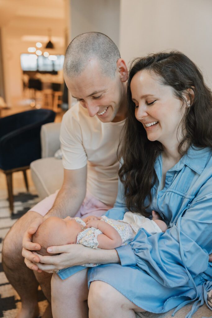 I was so excited to meet this baby girl at just six days old. While you’ll ideally schedule your session during your second trimester to secure your spot on my calendar, I recommend capturing newborn photos within your first two weeks together for the most relaxed and cozy pictures of your brand new family. That said, there’s no perfect time to document this stage, and it’s never too late. My lifestyle approach to in-home newborn sessions is entirely flexible. Whether your baby is days, weeks, or months old, we’ll capture their earliest features without rushing your family’s adjustment period.